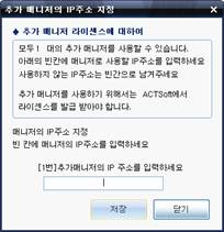 ¨è ¸Å´ÏÀú ÇÁ·Î±×·¥ÀÇ ¸Þ´º¿¡¼ ACTSoft>¸ÖƼ ¸Å´ÏÀú µî·Ï¿¡¼ Ãß°¡ ¸Å´ÏÀú PCÀÇ IPÁÖ¼Ò¸¦ ÀÔ·ÂÇÕ´Ï´Ù. ÀÔ·ÂµÈ IP¿¡¼¸¸ ¸ÖƼ¸Å´ÏÀú°¡ ½ÇÇàµË´Ï´Ù. |